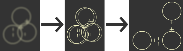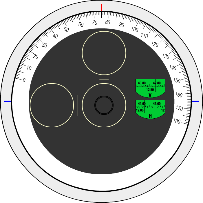 Ajustar meridianos horizontal y vertical así como el eje, logrando que por el ocular se vea similar a la siguiente ilustración: