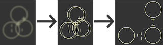 Centrar los aros concéntricos negros que se enfocaron inicialmente en el aro blanco inferior derecho.